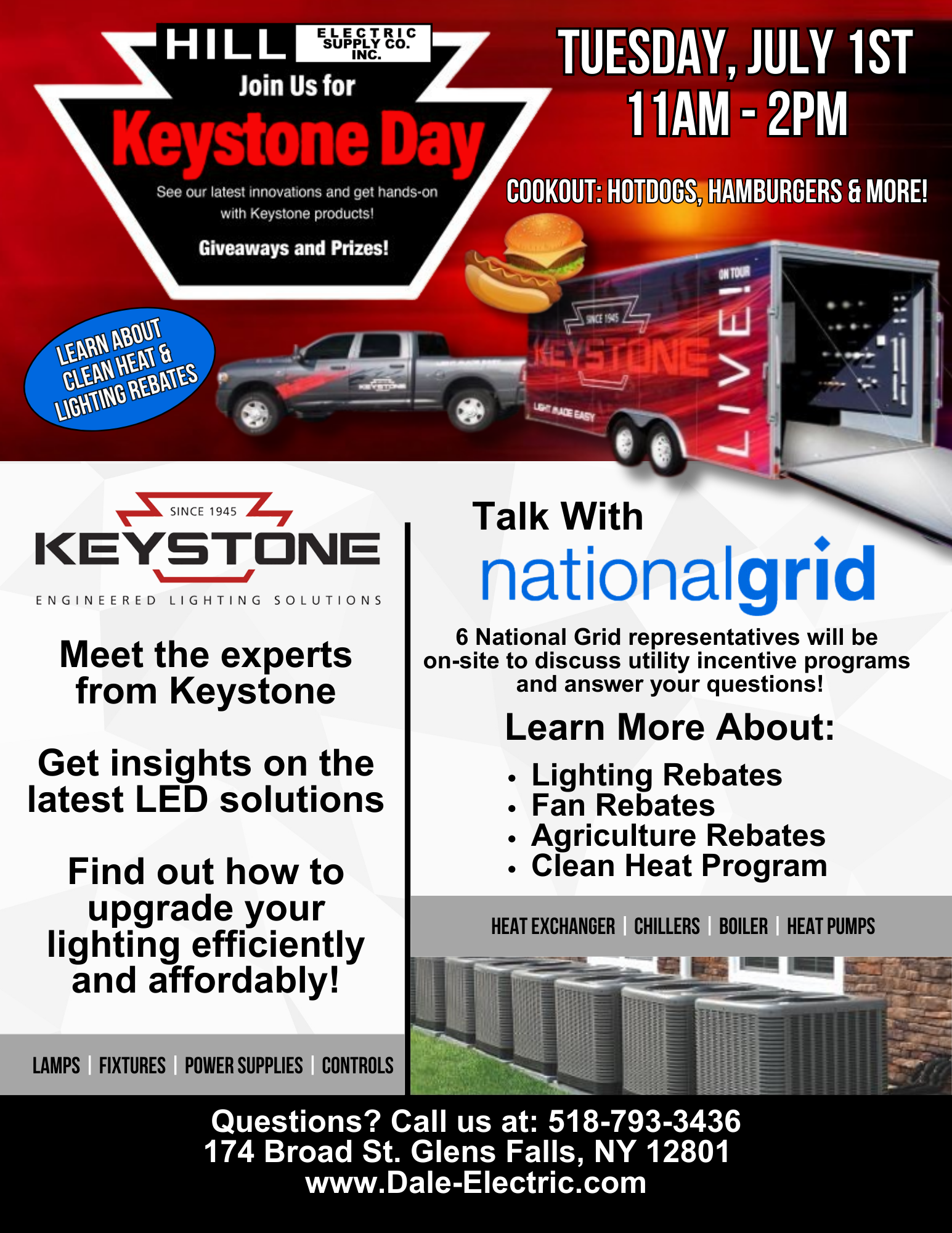 Hill Electric Supply Co., Inc., founded in 1948, provides industrial, commercial, and residential electrical products. Dale Electric Supply Co. sells over 600,000 items nationwide and internationally. EZ Energy Save helps businesses, farms, and non-profits switch to free or low-cost LED lighting.